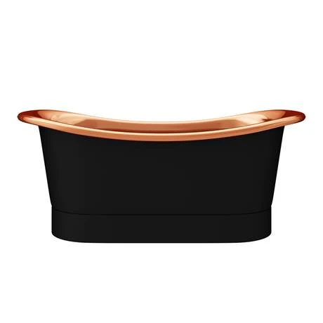 The luxury Trafalgar 1700 classic roll top double ended slipper bath, made using traditional metal working techniques, features a stunning matt black painted finish with a polished copper inner. This quality handcrafted bath provides the perfect focal point in both traditional and contemporary bathrooms, if you want to make a genuine statement with your bath design, then choose from our luxury matt black/copper bath collection. Designed for use with wall mounted or floor mounted free-standing bath taps.